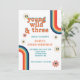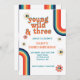 The Retro Young Wild and Three Birthday Invitation features a bold and dynamic typography, with the words "Young, Wild, and Three" taking centre stage. The retro-inspired elements, such as stars, arrows, and colourful accents, add a touch of nostalgia that both kids and parents will love. Personalize the invitation with your child's name and all the party details, making each guest feel like an essential part of the adventure.