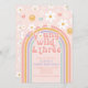Retro Young Wild and Three Rainbow 3rd Birthday Invitation