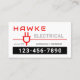 Design features a red power plug that draws power from your prestigious name at the top. This is followed by the business name "ELECTRICAL" alongside two caption remarks option which you can change. At the base is the contact details inside a black layer.