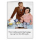 Les années 1950 rétro mari et épouse sont à la table de petit déjeuner. Pendant qu'il dispose à se diriger pour travailler pour le jour, il met sa main sur son épaule, sourit et se penche vers le bas vers elle pour dire quelque chose à elle. Elle sourit gentiment à lui. Le message sur la carte : "Il n'y a rien plus doux qu'en entendant un homme dites que ces trois petits mots. .you étaient droits."