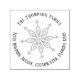 Add a touch of elegance to your holiday mail with these festive Christmas return address stamp. Perfect for showcasing your family name, these customizable labels feature a stylish round circle text layout with minimalist, whimsical winter snowflake accents. Designed with a rustic charm, they blend simple typography and an eye-catching mail stamp style, ideal for sending warm holiday greetings. Personalize yours today to add a unique, elegant touch to your seasonal correspondence!