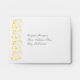 This personalized yellow, grey, and white floral A2 envelope has removeable PRINTED images on it that include a pair of joined yellow faux glitter and diamond jewel joined hearts that match the wedding invitation shown below. It is designed for you to use with your outgoing RSVP card. ****PLEASE NOTE that these envelopes take 10-14 BUSINESS days to manufacture, plus shipping time. Customize it to have your own return address on it. If you require any changes, or would like some other design element added to the envelope, please email niteowlstudio@gmail.com.
