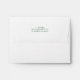 Classic white envelope with a three line, centred hunter green return address on the back flap.