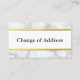 Do you need to make a moving announcement? This enclosure card has a white marble texture look and you can customize the sticker with your name and new address. On the back, there's customizable black text (shown:'Change of Address'). In the middle is a white background for your name and new address.
