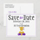 Send off this minimalist purple and gold "Save The Date" for your class reunion on this template postcard announcement. Personalize the text in the template fields for the front and back or click customize to select a typeface style, size, and colour you prefer.