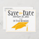 Send off this orange, black and white "Save The Date" for your class reunion on this template postcard announcement. Personalize the text in the template fields for the front and back or click customize to select a typeface style, size, and colour you prefer.