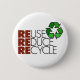 Reuse Reduce Recycle button, with a recycling symbol. Great for Earth Day, or anytime to promote protecting the Earth.