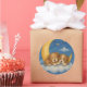 "Un design d'aquarelle adorable de deux chiots endormis blottis sur un nuage moelleux sous un croissant de lune et un ciel étoilé — parfait pour ajouter une touche de douceur aux ordinateurs portables, bouteilles d'eau ou journaux."