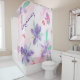 Un rideau design à gros motifs floraux avec une aquarelle. Violet, rose, rouge