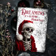Rêve d'une carte de Noël gothique. © Dark Heart Desires. Cette carte de Noël gothique a un squelette portant un chapeau et une veste de Père Noël et les mots Dreaming of a gothic Christmas dessus. Cette carte est vide à l'intérieur afin que vous puissiez ajouter votre propre message.