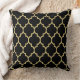 Reversible Black And Gold Tan Quatrefoil Pattern Throw Pillow