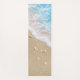 Beautiful blue beach waves roll up on soft beach sand covered in pretty seashells on one side of this yoga mat, while the other side is decorated with a refreshing blue underwater scene.