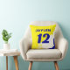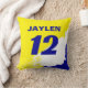 Personalize this name and number colour mix, paint brush style blue, yellow, and white throw pillow. The options to change the font type or colour of the text are available. Ideal for a man cave, dorm room, or bedroom.