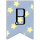 Emmenez le rêveur dans votre petit avec ce mobile ludique, au thème spatial, orné d'une lune en croissant, d'une étoile filante, d'un soleil éclatant, d'une fusée et d'une planète colorée accrochée aux bras avec des détails de zigzag bleu et violet et une étoile au milieu. Un motif de rayures bleu pâle dans deux tons et des étoiles jaunes douces ajoute un arrière - plan sympathique au mobile aux couleurs vives. Customisez le message sur la bannière avec le genre de votre petit futur ou un message de votre choix pour créer une décoration de fête vraiment unique pour votre baby shower. Cela peut facilement être changé entre "garçon", "fille" et "bébé", et si vous avez des jumeaux ou d'autres multiples, cliquez simplement sur le bouton "Customiser" pour plus d'options. N'oubliez pas de consulter la collection Dreams of Space Mobile pour plus de cadeaux et de produits pour un baby shower ou le petit dans votre vie.