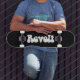 Revolt - White on Black Skateboard