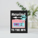 Rewind back to the 80's, this design features a eighties classic pink walkman or cassette player and text saying "Rewind back to the 80's".