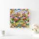Brighten up your home with this stunning square acrylic wall art featuring our adorable Rex and hood characters dressed as Easter bunnies surrounded by a vibrant explosion of colourful eggs flowers and treat treats printed on high-quality acrylic. It brings a fun modern and cheerful touch to any room perfect for adding a splash of joy to your walls.