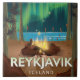 Reykjavik Camping at night under the northen lights Vintage Travel Poster.