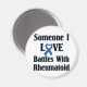 Rheumatoid arthritis RA design. Support and awareness for rheumatoid arthritis, an painful, debilitating auto-immune disease. Features the RA blue ribbon for awareness and the words "Someone I love battles with Rheumatoid"