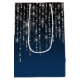 Rows of hanging sparkling rhinestone bling on gradient blue and black background for birthday.