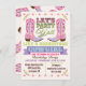 Faisons la fête à l'occidentale de strass style cowgirl avec ces invitations super mignonnes à la fête d'anniversaire de bottes de cowboy avec de jolies bottes et des graphiques en faux strass rose et violet fait dans un style poster. Un thème si amusant pour la fille de se réunir ! Illustration tirée à la main par McBooboo.