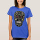 Skeleton skull diamond rhinestones in gold and red design ladies fashion tshirt. Customize your tee top colour, style and size. Hand designed diamond rhinestone Gothic sugar skull gemstones in gold and red.