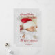 A modern, sweet baby announcement holiday card template with a winter holidays theme, featuring a white crushed foil background (digital effect, not real foil!), snowflakes with a rhinestones effect and modern, Christmas red calligraphy and typography for the title: "Snowflakes, Smiles & Baby Snuggles".