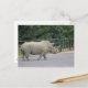Photograph of a Southern White rhinoceros walking towards the gate of it's enclosure.