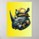 Rhino the Miner" is a bold and striking design that features the head of a rhino, equipped with a miner's helmet and a protective mask, set against a vibrant yellow background. The rhino's strong and determined expression symbolizes strength and resilience. The helmet and mask add a touch of adventure and ruggedness, suggesting a challenging and industrious environment. The yellow background not only makes the design pop but also conveys energy and optimism. This design merges the power of the wild with the grit of mining, creating a unique and eye-catching illustration.