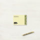 Black and yellow rhinos march across green stripes alternating with loosely “woven” stripes in African colours of red, black and green with yellow accents in the pattern that accents this personalized post-it pad along with a graphic rhinoceros in silhouette.