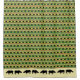 This wildlife themed shower curtain is embellished with a pattern of black and yellow rhinos marching across green stripes alternating with loosely put together stripes in African inspired hues of red, black and green with yellow accents and a row of rhinoceros silhouettes along the bottom.