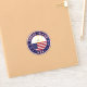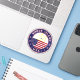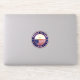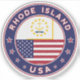 Badge of Rhode Island with flag of Rhode Island and flag of United States, rounded shape.