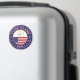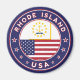 Badge of Rhode Island with flag of Rhode Island and flag of USA colors, rounded shape.