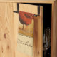 Rhode Island Red Chicken Rooster standing in the dry grass on a warm sunny summer day. Accented with a matching sandy yellow background with a subtle abstract pattern.