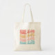 These bags were super cute (I purchased 3). The material is more of a canvas look & feel. The colour of the bag is slightly off white, but the letters look exactly as pictured. I took 3 photos in different lighting. Would recommend! I liked how there was an option to choose the font and colour of the name. The words are legible and the colours are exactly as pictured.