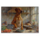 Add strength and elegance to your kitchen with this Rhodesian Ridgeback design featuring a confident pup cooking in a cozy setting. With its sleek coat, powerful build, and calm expression, this artwork captures the breed’s dignified and loyal personality.