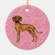 Rhodesian Ridgeback Dog On Pink Hearts With Name Ceramic Ornament