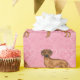 Destei's original cartoon illustration of a cute Rhodesian Ridgeback breed dog on a pink background colour with a pattern of hearts in different sizes.