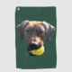 Rhodesian Ridgeback at Play Golf Towel with hand-drawn design by ArtistsQuest features a cute and playful Rhodie with a tennis ball in its mouth.