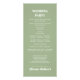 This BUDGET wedding ceremony and party program is beautifully designed with a white frame and a sage green border on the left side, giving it an elegant touch. In the upper left corner, there is a branch of rhododedron adorned with peach-pink flowers, adding a natural and romantic element to the overall design. The text is highlighted in bold typography, making it stand out and easy to read. The back of the program is a calming sage green color, tying the whole look together seamlessly.