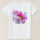 This shirt is decorated with a stunning pink and magenta rhododendron flower (front and back)