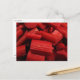 This postcard features closeup fine art photography of rhubarb stalks (Rheum rhabarbarum) cut up and ready for pie or sauce. The arrangement of pieces and lovely red colour create an interesting abstract pattern. Sometimes considered a fruit and sometimes a vegetable, this herbaceous perennial is one of the first spring edibles in the garden. The roots are used in traditional Chinese medicine.