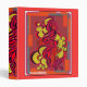 From an originall drawing done in ink and marker. Whoa, they will see you coming with this binder. Totally pop art in a bright orangish-red. Twisting rope intertwines yellow textured sphers. Artist signature on front.