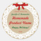 White lace round with bright red ribbon bow set on an old fashioned parchment style background. Take pride in your handmade crafts and homemade preserved food. Completely personalized text fields for you to make this sticker your own.