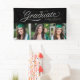 With a stylish script "graduate" in a trendy ribbon script, this three photo graduation banner is the perfect way to celebrate your senior. This black and white design by Lea Delaveris Design features three photos along with room for customizable text including name, school, year and more. This preppy graduate banner is great for high school graduation parties, college graduation parties and more. Find more coordinating designs and other styles in the collection.