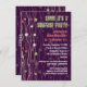 Olive, red and white strings with spheres attached to them hang down as if they were released into the air giving this party invitation a festive feel. The image is also used as a watermark against the rich purple background. Great for any type of party: a corporate event, birthday party, surprise party or a cocktail party. Available in alternate colours with matching products.
