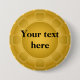 This pin back button is decorated with a yellow ribbon rosette representing third place. Easily customize the text for your own event.