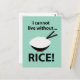 Rice Bowl I Cannot Live Without Rice Postcard original design by Nisha Prabhu. Embrace your love for rice with our 'Rice Bowl: I Cannot Live Without Rice' postcard! This charming design serves as the perfect tribute to your favourite grain. Whether it’s a comforting bowl of jasmine rice or a savory serving of fried rice, this postcard celebrates all the delightful dishes that bring joy to your taste buds. Ideal for kitchen decor, foodie friends, or a fun way to share your culinary passion, this postcard is a must-have for rice enthusiasts.