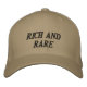 Fits well due to elastic edging, not adjustable. Good qualty material. Good quality embroidering. Subtle lettering (white on beige) just as my wife likes.