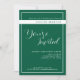 A simple, minimalist birthday invite in a rich deep green colour with elegant script typography.